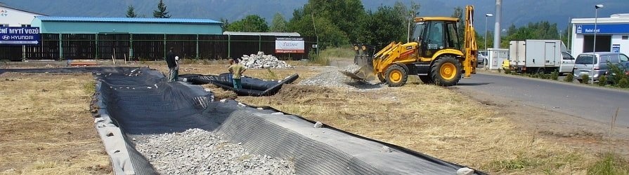 Stabilisierungseffekt durch Geogitter kann nicht nur bei verschiedenen Verkehrsflächen, sondern auch bei der Gründung von Gebäuden und Hallen genutzt werden. Das allgemeine Prinzip, bei dem eine Schicht aus Gesteinskörnung oder ähnlichem körnigem Material auf ihrer Unterseite durch ein geeignet gewähltes Geogitter fixiert wird, gilt auch für Bauwerke mit dauerhafter Belastung. Wie bei Verkehrsflächen können so die Dicken der einzelnen Konstruktionsschichten reduziert werden. Ein nicht zu vernachlässigender Vorteil ist zudem die Verteilung ungleichmäßiger Setzungen der Konstruktionen.